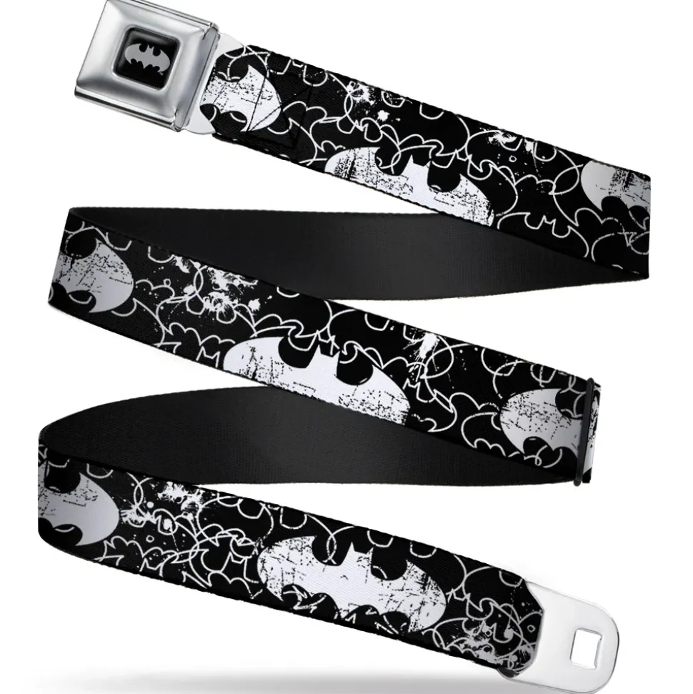 Batman Black Silver Seatbelt Belt – Batman Outlines Black/White Webbing