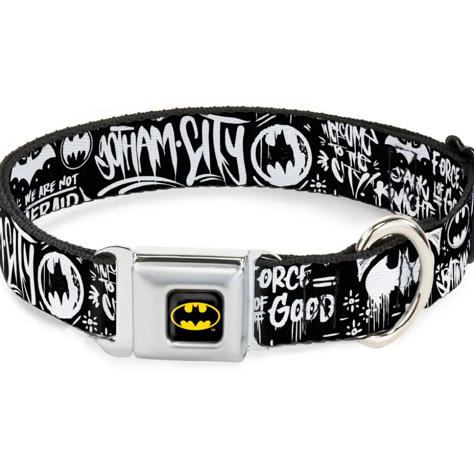 Batman Black/Yellow Seatbelt Buckle Collar – Batman Gotham City Graffiti Collage Black/White