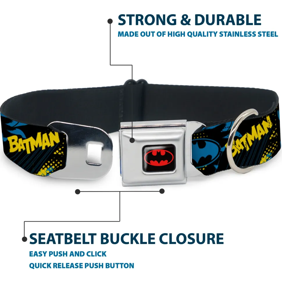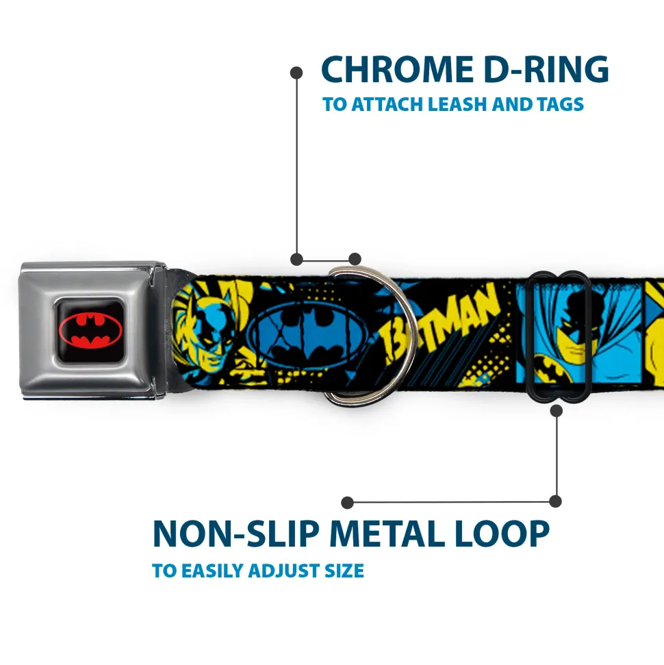 Batman Black/Yellow Seatbelt Buckle Collar – BATMAN Poses and Logo Collage Black/Blue/Yellow