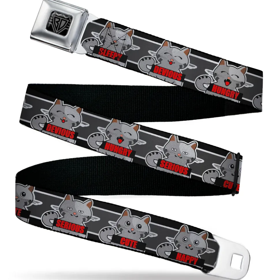 BD Wings Logo CLOSE-UP Black/Silver Seatbelt Belt – Cat 6-Mood Poses/Stripe Black/White/Grays Webbing