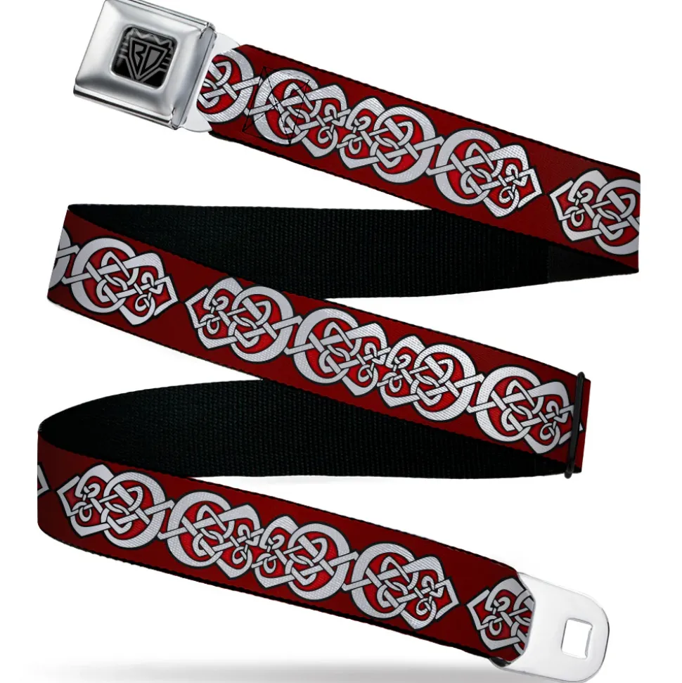 BD Wings Logo CLOSE-UP Black/Silver Seatbelt Belt – Celtic Knot5 Reds/Black/White Webbing