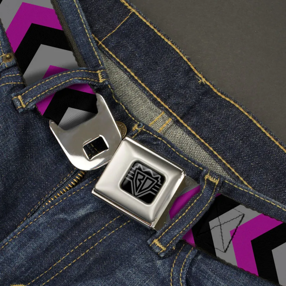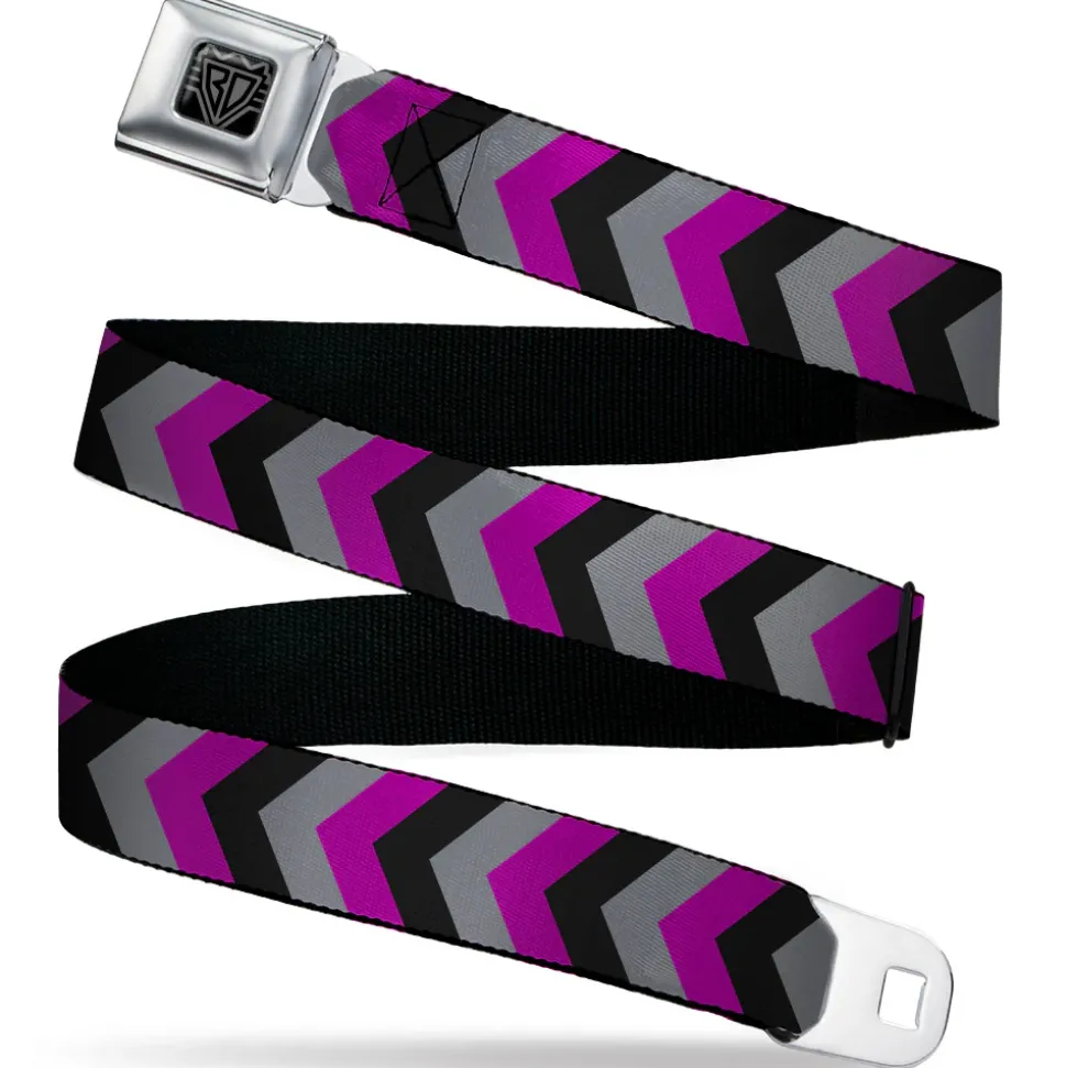 BD Wings Logo CLOSE-UP Black/Silver Seatbelt Belt – Chevron Purple/Black/Gray Webbing