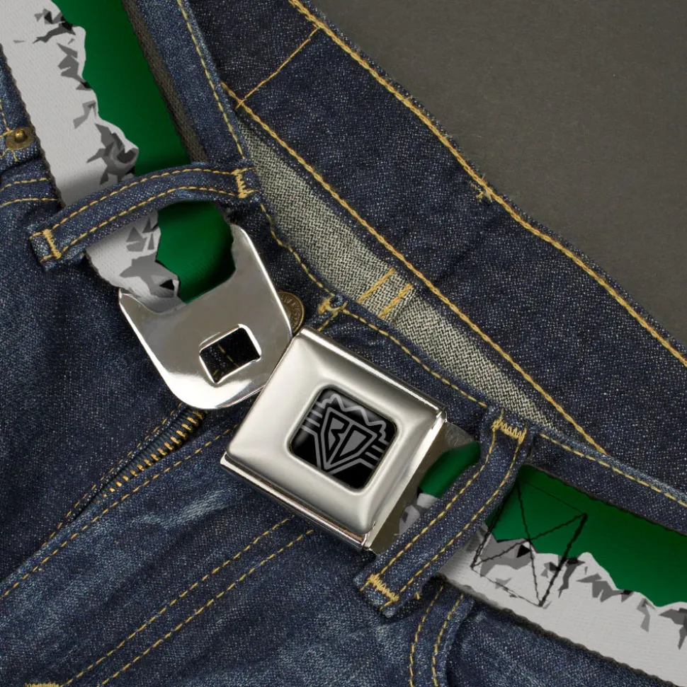 BD Wings Logo CLOSE-UP Black/Silver Seatbelt Belt – Colorado Mountains Green/Grays Webbing