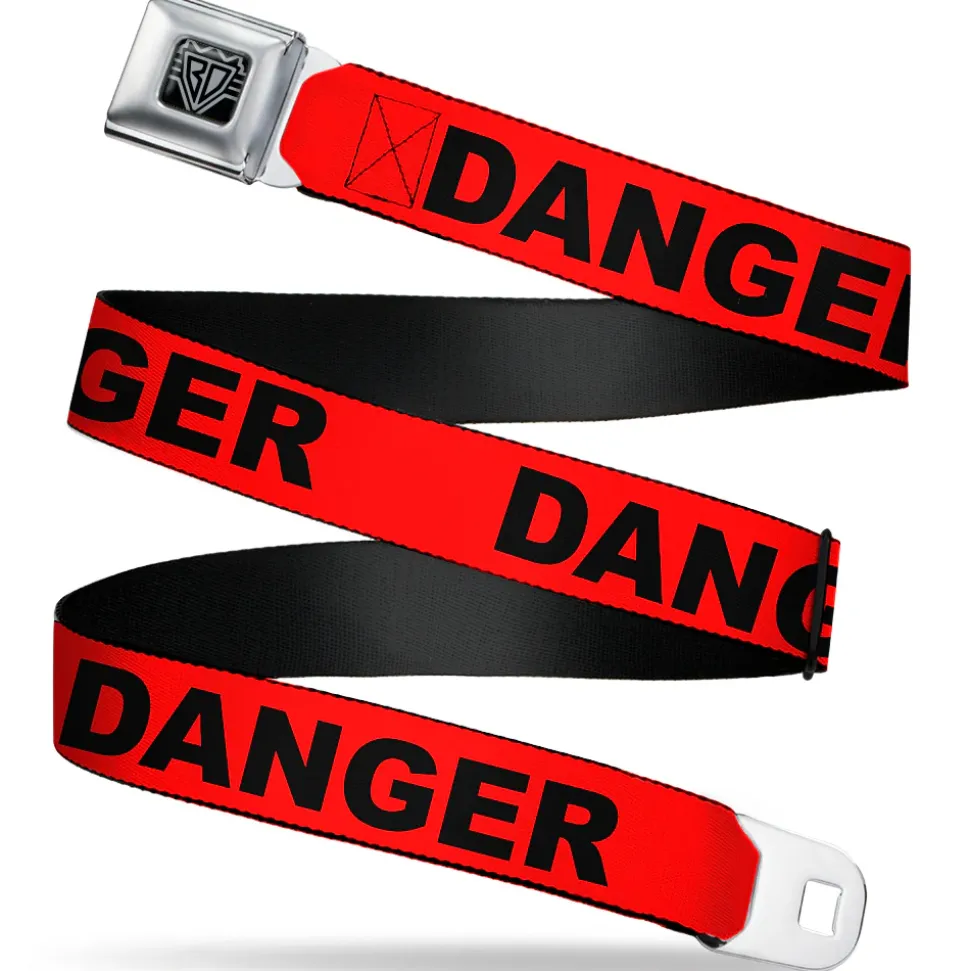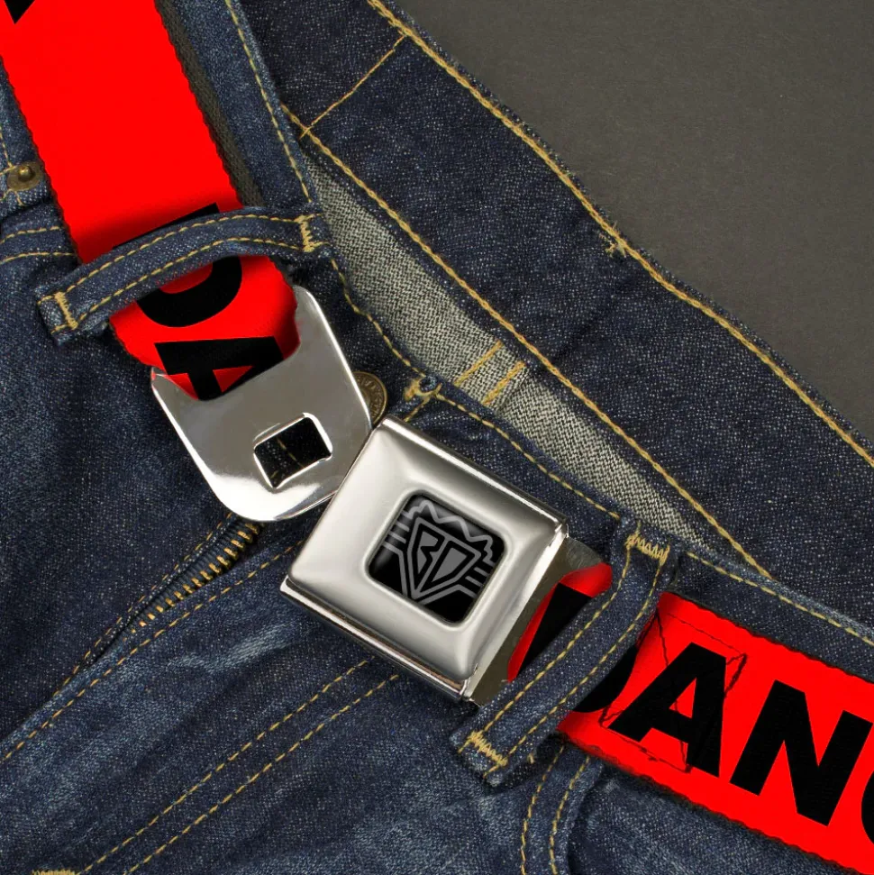 BD Wings Logo CLOSE-UP Black/Silver Seatbelt Belt – DANGER Text Red/Black Webbing