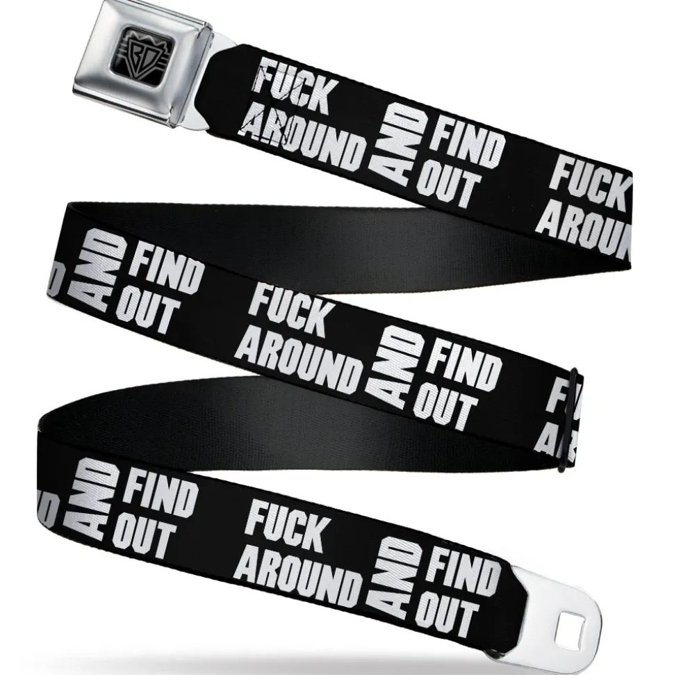 BD Wings Logo CLOSE-UP Black/Silver Seatbelt Belt – FAFO FUCK AROUND AND FIND OUT Bold Black/White Webbing