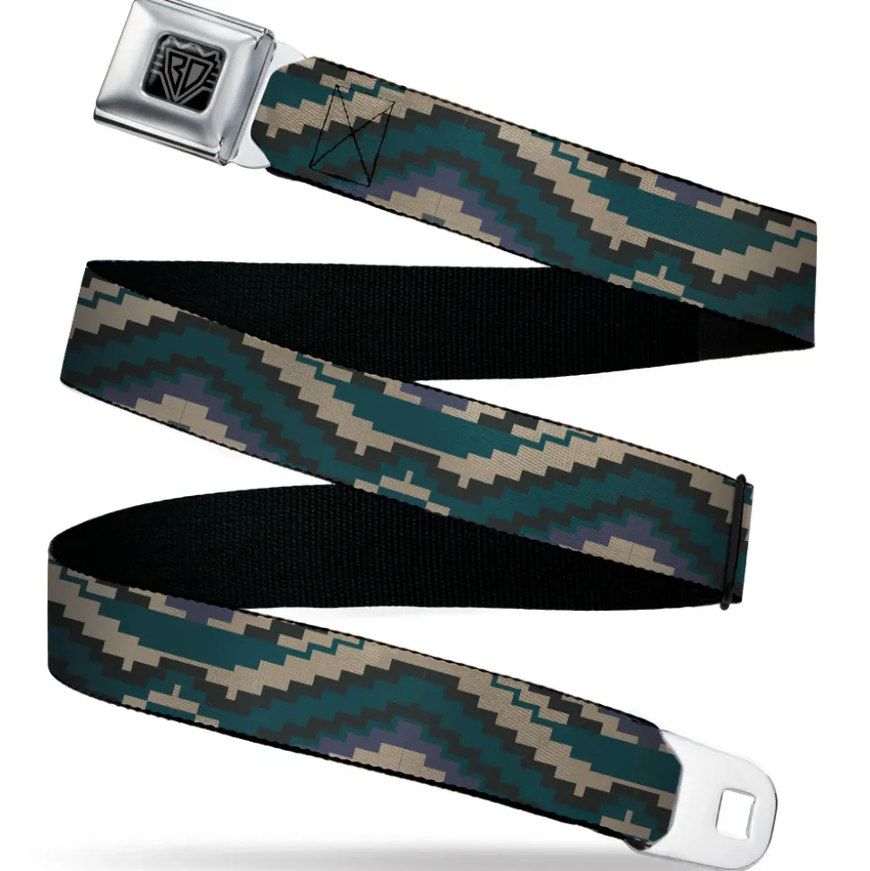 BD Wings Logo CLOSE-UP Black/Silver Seatbelt Belt – Geometric Chevron Gray/Blue/Purple Webbing