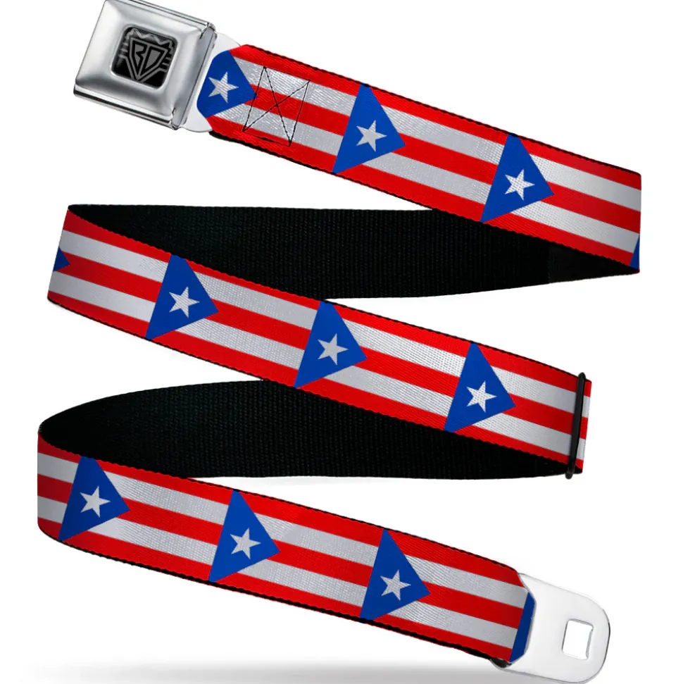 BD Wings Logo CLOSE-UP Black/Silver Seatbelt Belt – Puerto Rico Flag Continuous Webbing