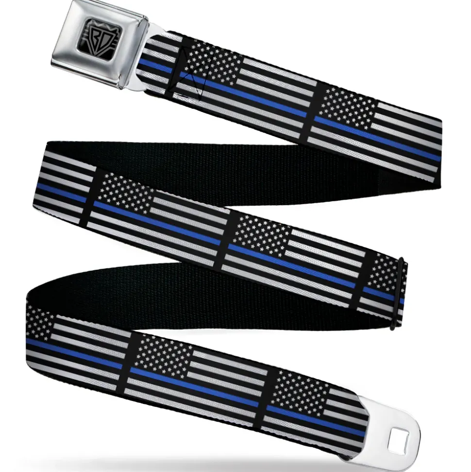 BD Wings Logo CLOSE-UP Black/Silver Seatbelt Belt – Thin Blue Line Flag Black/Gray/Blue Webbing