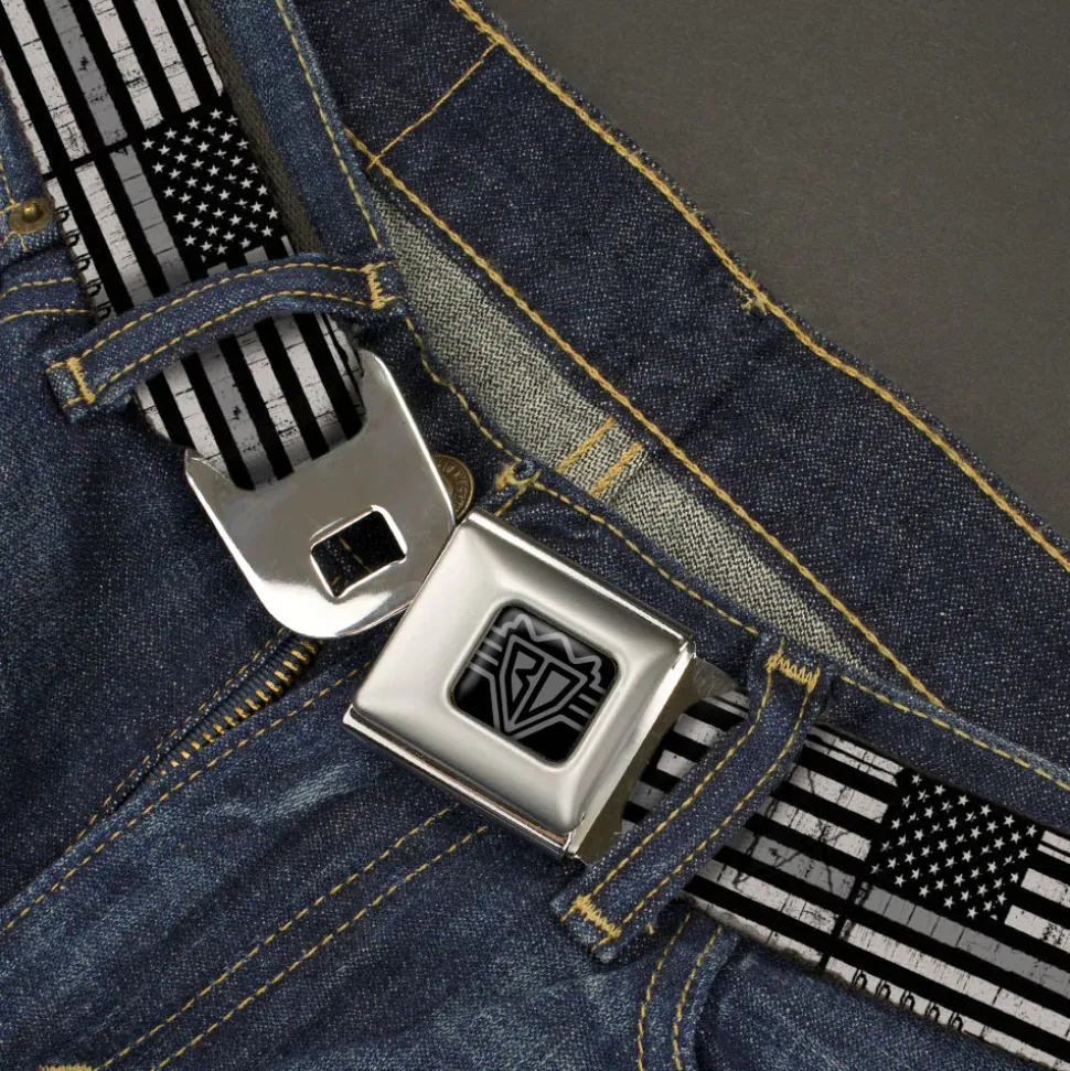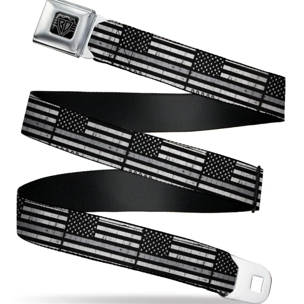 BD Wings Logo CLOSE-UP Black/Silver Seatbelt Belt – Thin Gray Line Flag Weathered Black/Grays Webbing