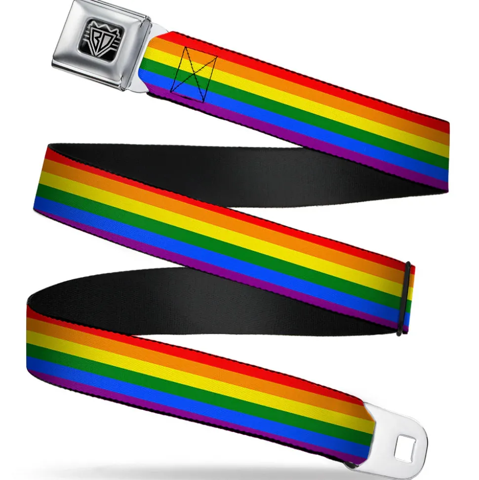 BD Wings Logo CLOSE-UP Full Color Black Silver Seatbelt Belt – Flag Pride Rainbow Webbing