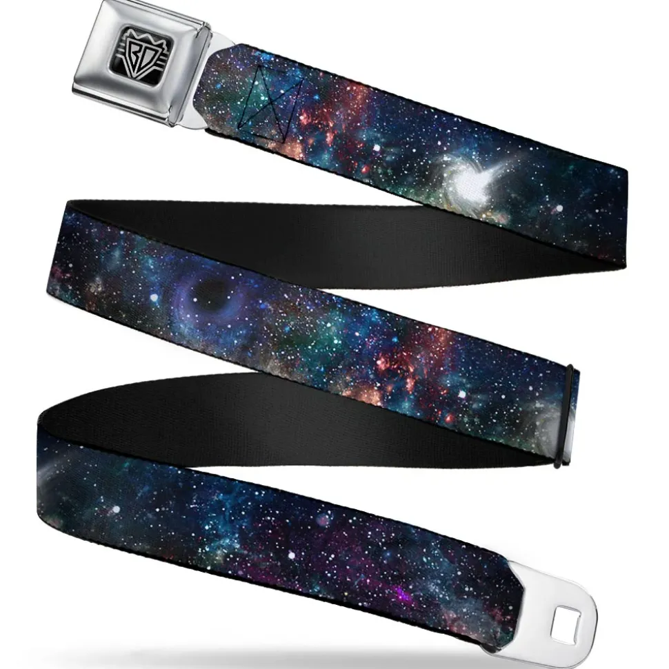 BD Wings Logo CLOSE-UP Full Color Black Silver Seatbelt Belt – Galaxy Collage Webbing