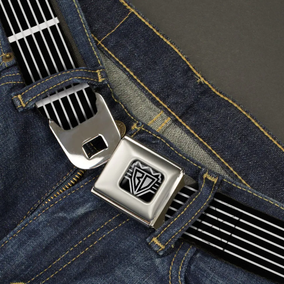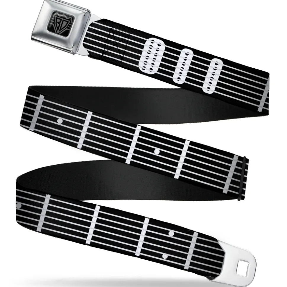 BD Wings Logo CLOSE-UP Full Color Black Silver Seatbelt Belt – Guitar Neck Black/White Webbing