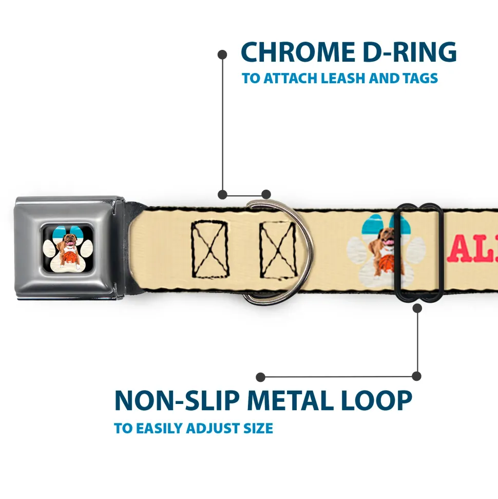 Beach Dawg Care Paw Logo Full Color Black Seatbelt Buckle Collar – BEACH DAWG CARE ALL DOGS ARE EQUAL Cream/Pink
