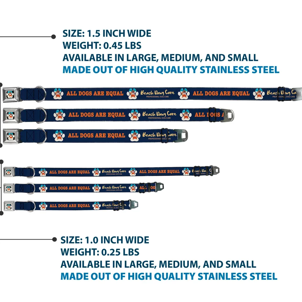 Your dog will be the talk of the town when people notice they’re wearing this awesome SeatBelt Dog Collar! Made from high-density polyester and durable steel components, this collar is built to last. It features beautiful vibrant artwork. The buckle is a miniature authentic SeatBelt Buckle, so you press the center button to release the clasp. This product is assembled in the USA by Buckle-Down Inc. and officially licensed by Buckle-Down.