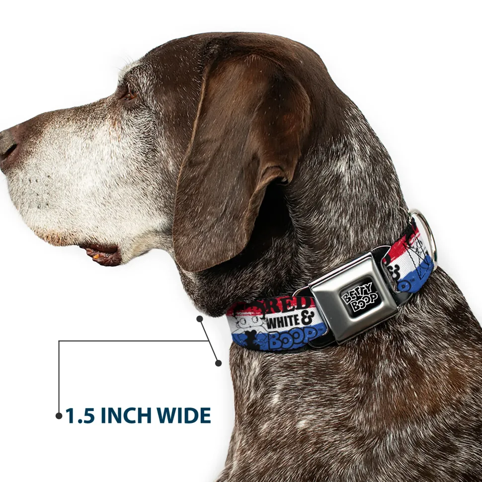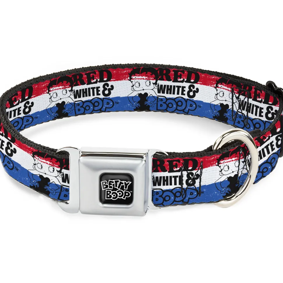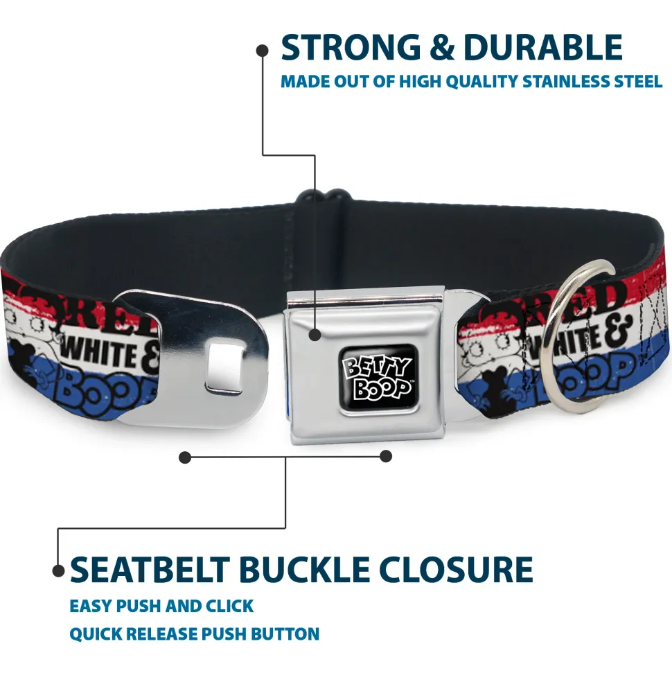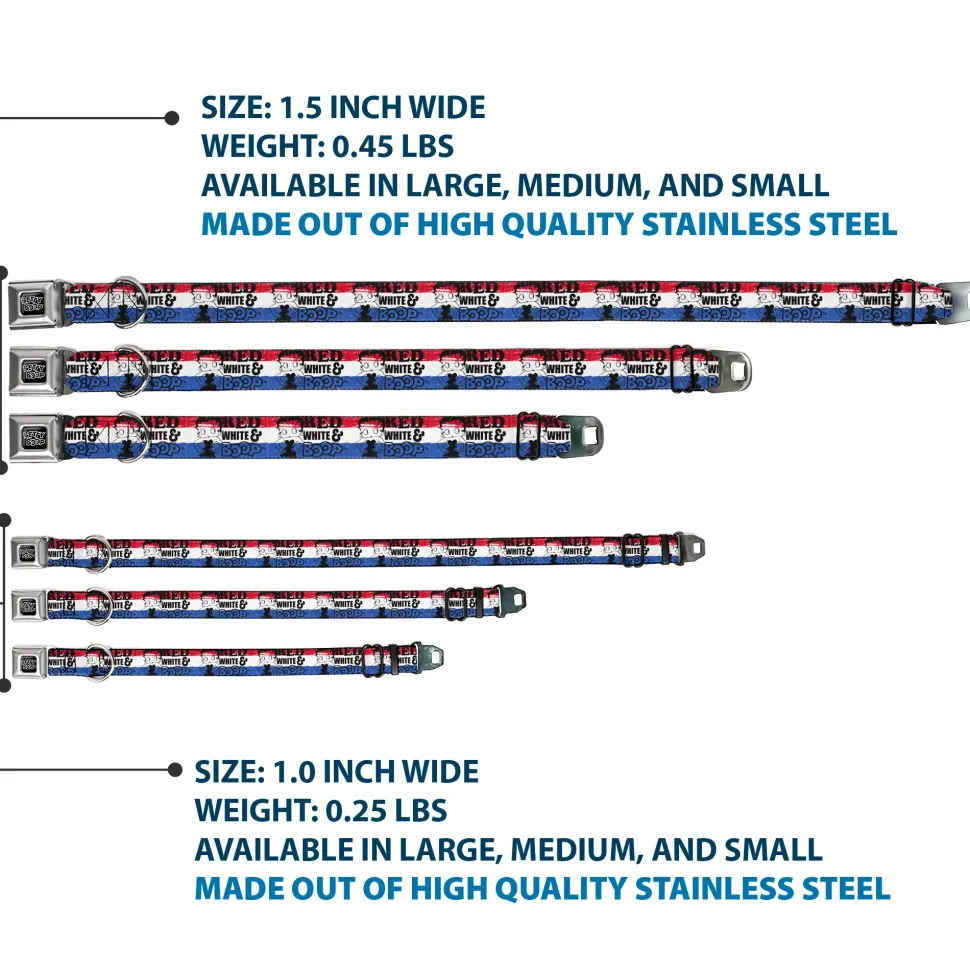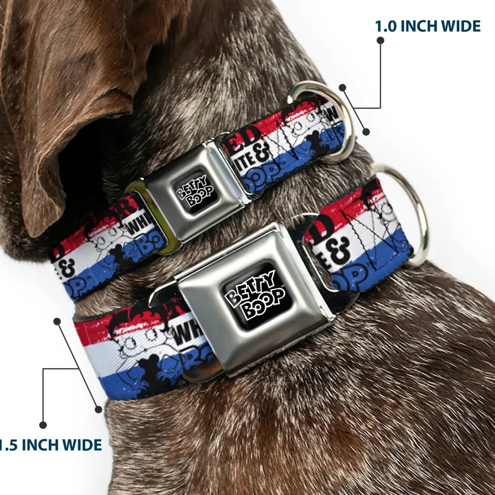 BETTY BOOP Text Heart Logo Full Color Black/White Seatbelt Buckle Collar – Betty Boop RED WHITE & BOOP Pose Americana Stripe Red/White/Blue/Black