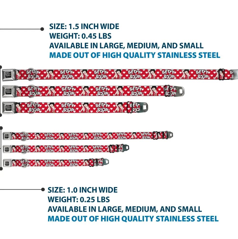 Your dog will be the talk of the town when people notice they’re wearing this awesome SeatBelt Dog Collar! Made from high-density polyester and durable steel components, this collar is built to last. It features beautiful vibrant artwork. The buckle is a miniature authentic SeatBelt Buckle, so you press the center button to release the clasp. This product is assembled in the USA by Buckle-Down Inc. and officially licensed by Fleischer Studios, Inc.
