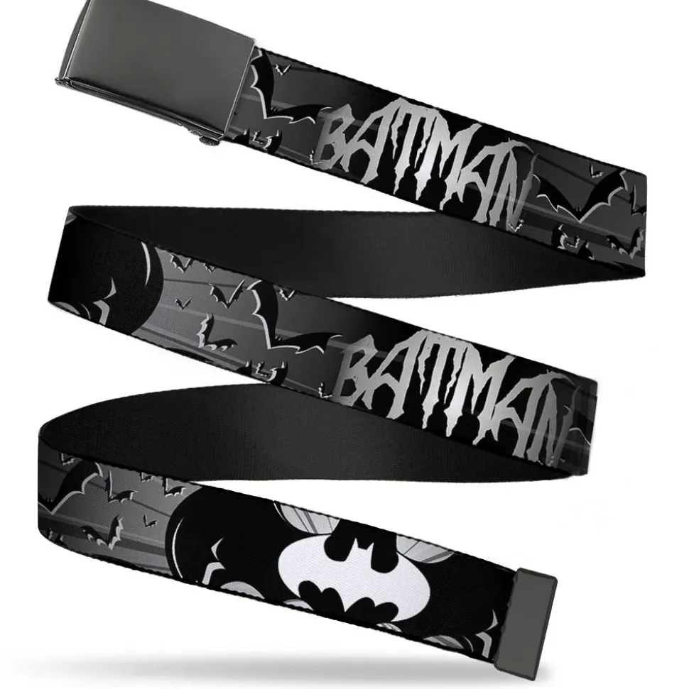 Black Buckle Web Belt – BATMAN w/Bat Signals & Flying Bats Black/White Webbing