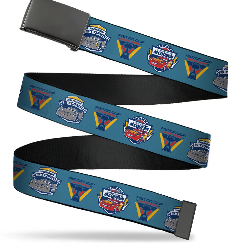 Black Buckle Web Belt – Cars 3 PISTON CUP RACING SERIES Icon/LIGHTNING MCQUEEN Pose3/JACKSON STORM Pose2 Blue Webbing