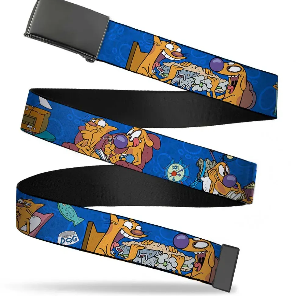 Black Buckle Web Belt – CatDog Hanging Out Poses Blue Webbing