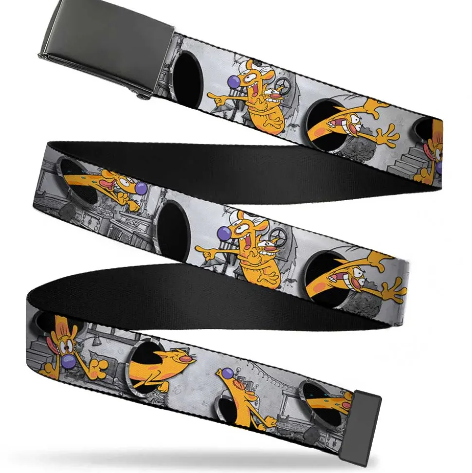 Black Buckle Web Belt - CatDog House Poses Grays Webbing