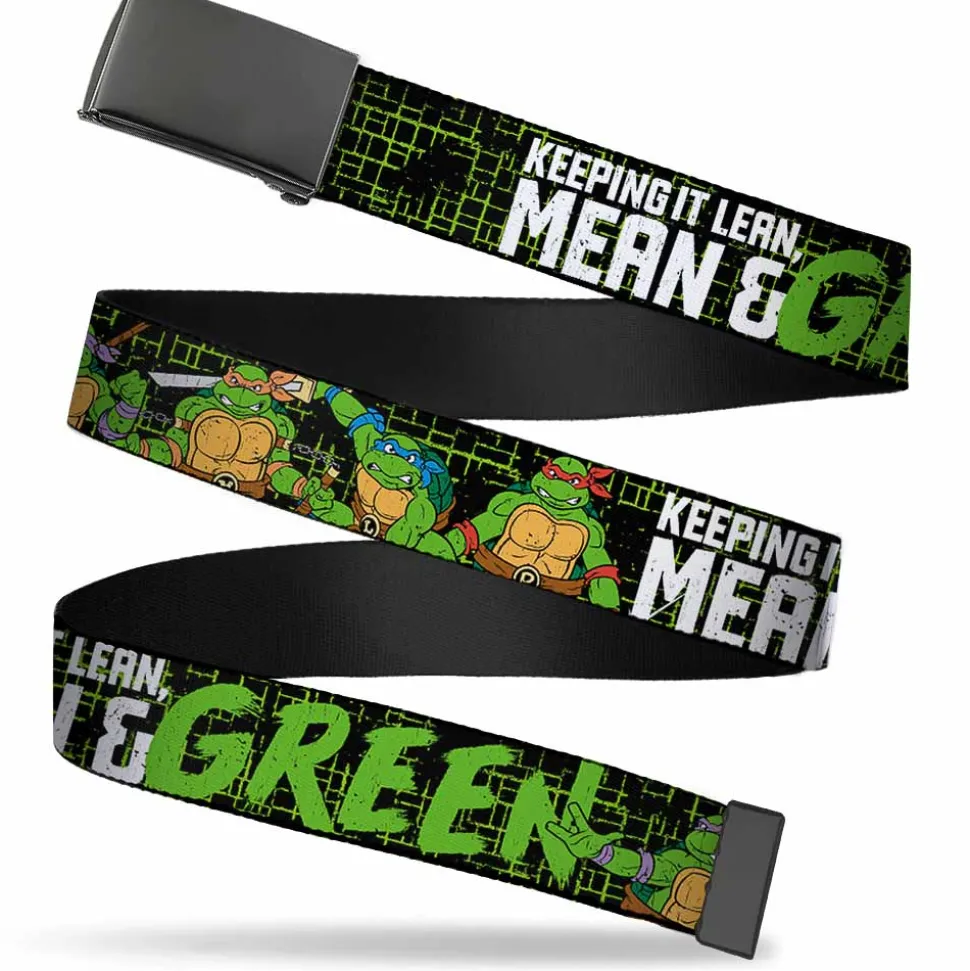 Black Buckle Web Belt – Classic TMNT Group Pose6/KEEPING IT LEAN, MEAN & GREEN Black/Green/White Webbing
