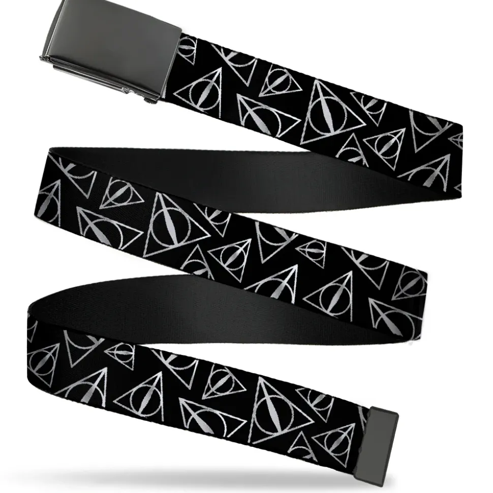 Black Buckle Web Belt – Harry Potter Deathly Hallows Symbol Scattered Black/Silver Webbing