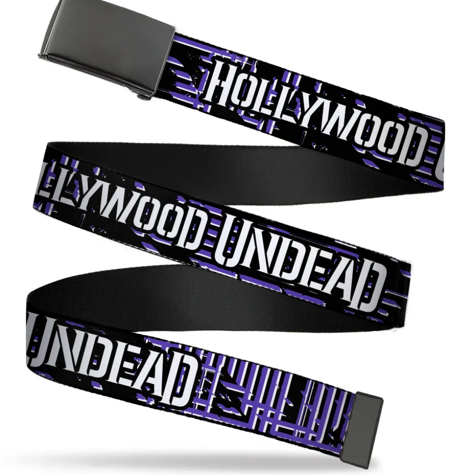 This unique web belt features a solid plain military-style clasp Buckle. It features beautiful artwork which is dyed into the fabric to ensure it looks great for years. This belt is available in 1.0″, 1.25″, and 1.5″ widths. 1.0″ wide belt is sized for children and adults with pants size 30 or lower. 1.25″ and 1.5″ wide belts are sized for adults, fitting up to pant size 42. This web belt is made from high-density nylon and steel. 1.5″ wide belt also has a bottle opener built into the back of the buckle! This product is Made in the USA by Buckle-Down Inc. and is officially licensed by Hollywood Undead.