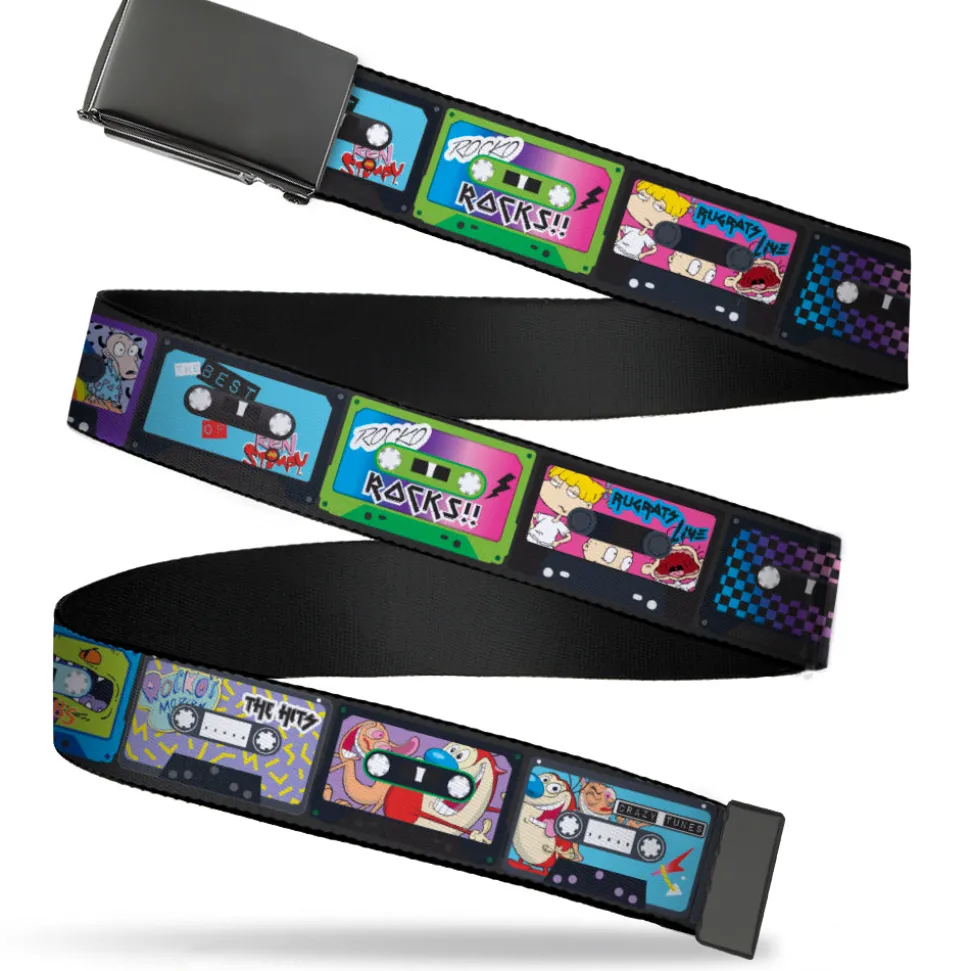Black Buckle Web Belt – Nick 90's Rewind 13-Mash Up Cassette Tapes Black Webbing
