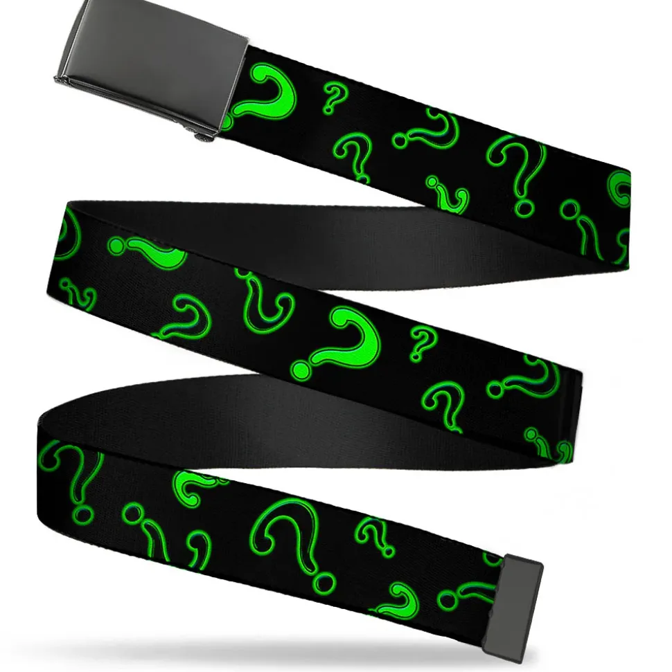 Black Buckle Web Belt – Question Mark Scattere2 Black/Neon Green Webbing