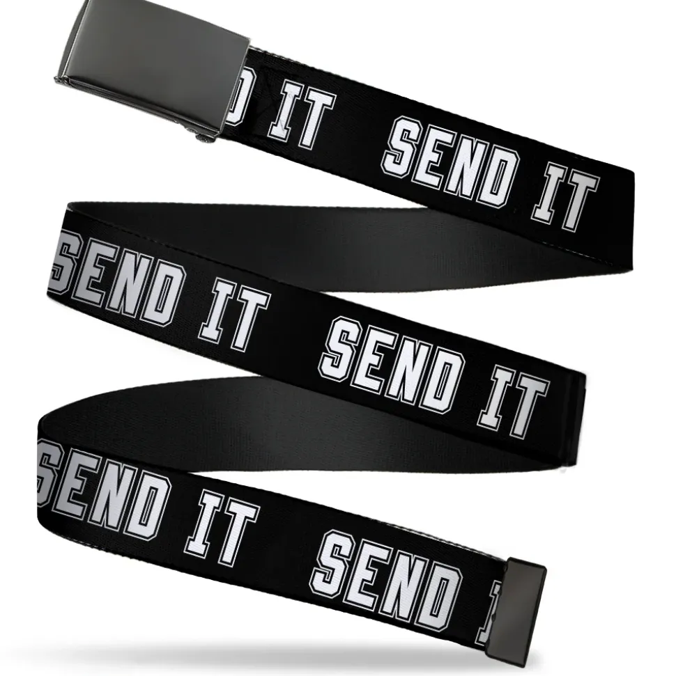 Black Buckle Web Belt – SEND IT Black/White Webbing