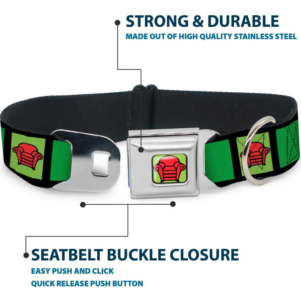 Blue's Clues Steve's Thinking Chair Full Color Green/Black/Red Seatbelt Buckle Collar – Blue's Clues Steve's Stripe and Thinking Chair Black/Greens/Red