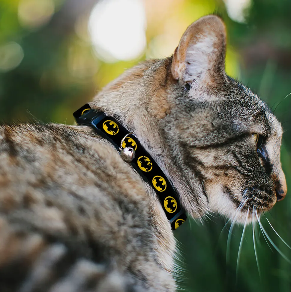 This cat collar features beautiful, original artwork and durable components including a bell. The collar is made from high-density polyester and a plastic clip which is over engineered in thickness, ensuring it will hold up to whatever your pet can dish out. This product is assembled in the USA by Buckle-Down Inc. and officially licensed by DC Comics.