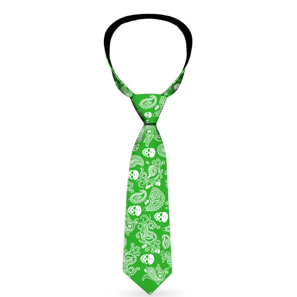Buckle-Down Necktie - Bandana/Skulls Irish Green/White