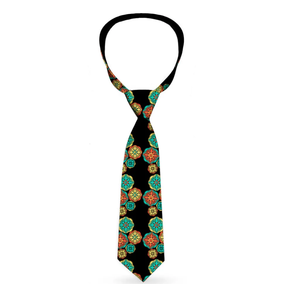 Buckle-Down Necktie - Boho Mandala Black/Yellow/Turquoise/Orange