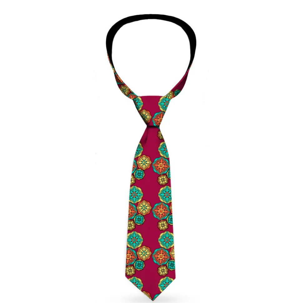 Buckle-Down Necktie - Boho Mandala Burgundy/Yellow/Turquoise/Orange