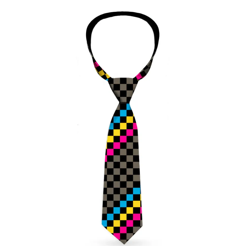 Buckle-Down Necktie - Checker Stripe Black/Gray/Blue/Gold/Pink
