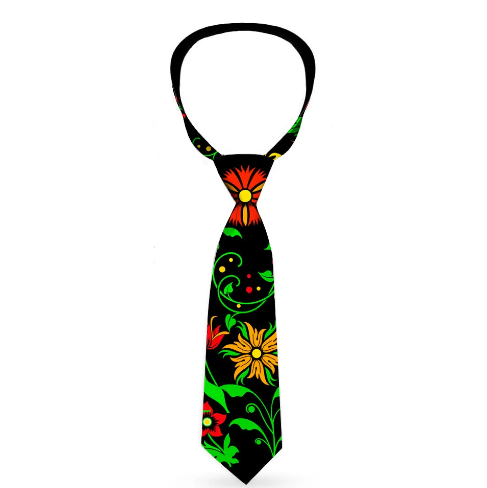 Buckle-Down Necktie - Floral Collage Black/Red/Orange/Green