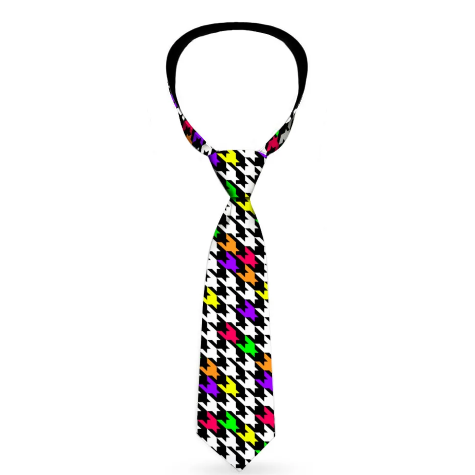 Buckle-Down Necktie - Houndstooth Black/White/Multi Neon
