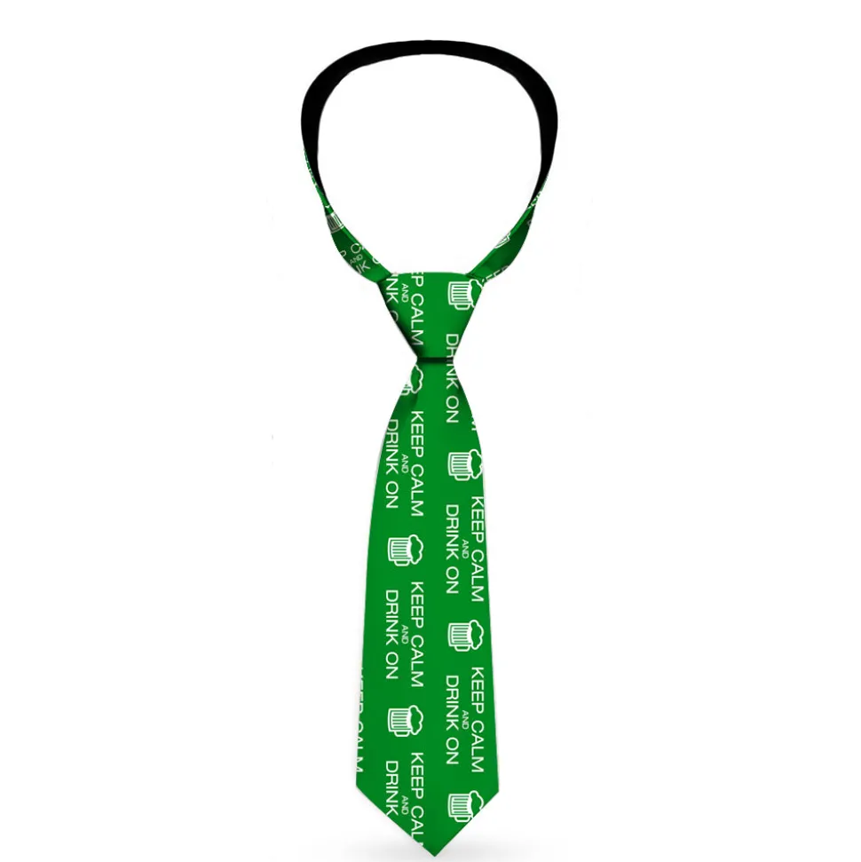 Buckle-Down Necktie - KEEP CALM AND DRINK ON/Beer Green/White