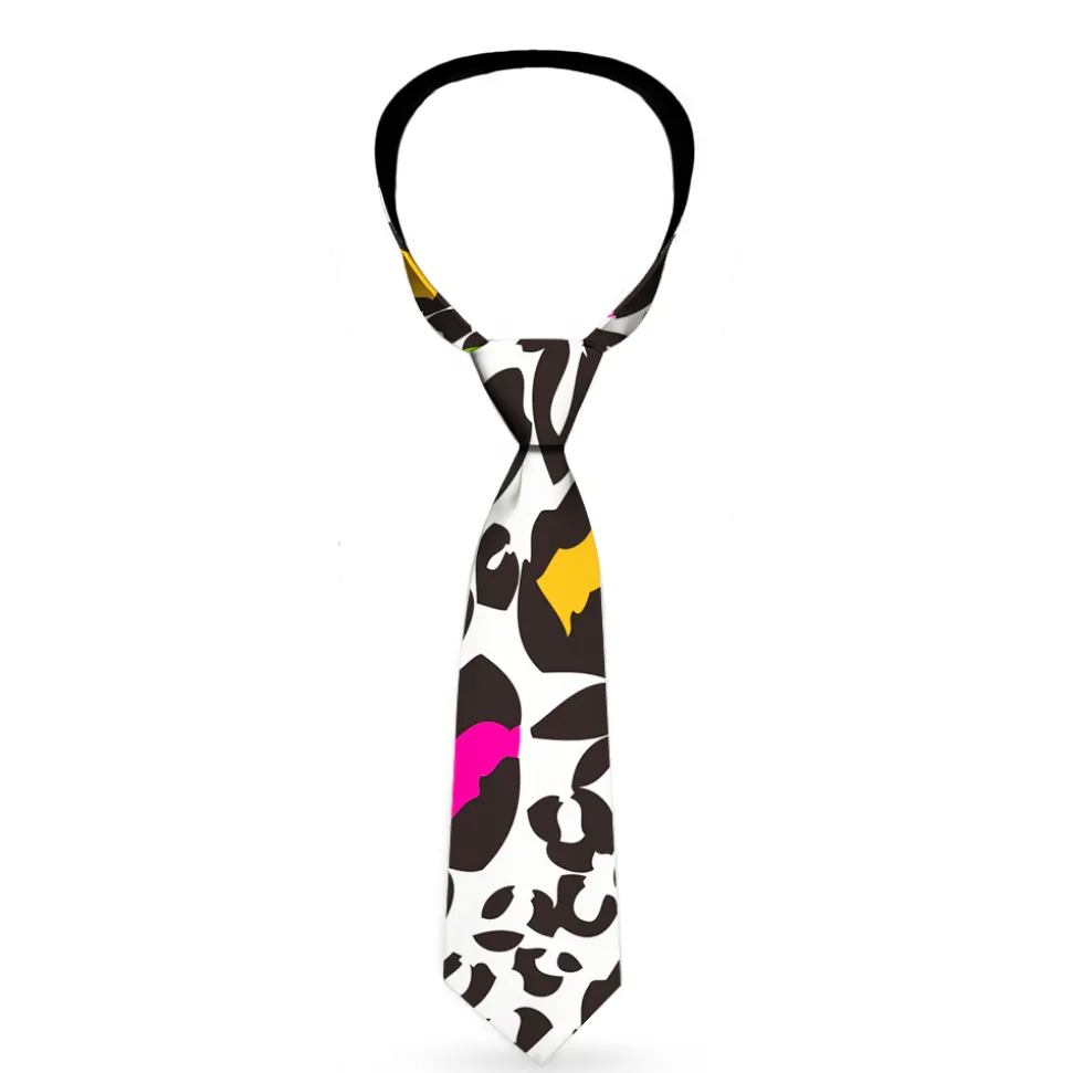 Buckle-Down Necktie - Leopard White/Black/Multi Color