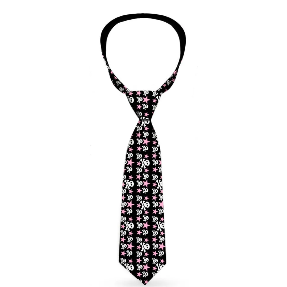 Buckle-Down Necktie – Skulls & Stars Black/White/Pink
