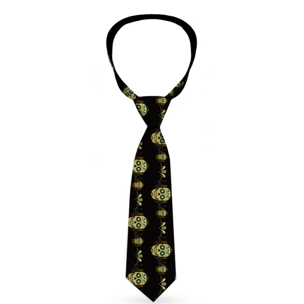 Buckle-Down Necktie - Sugar Skulls Black/Olive/Burgundy
