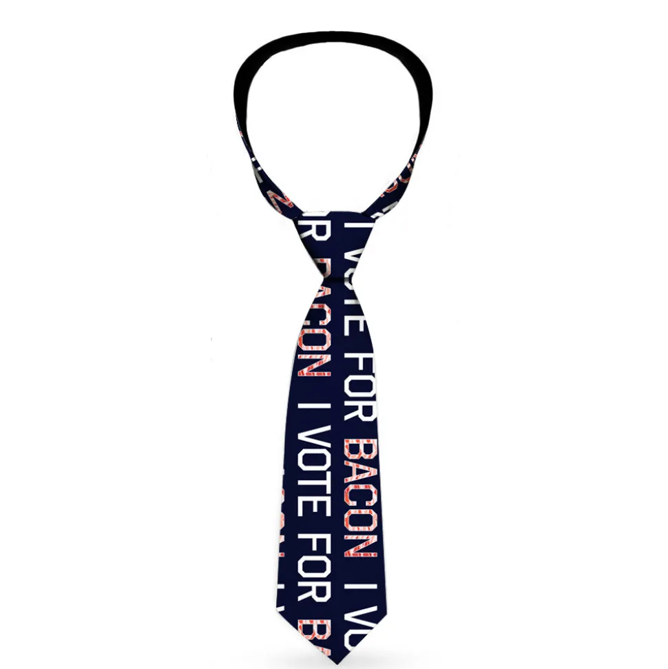 Buckle-Down Necktie – VOTE FOR BACON Black/White/Bacon