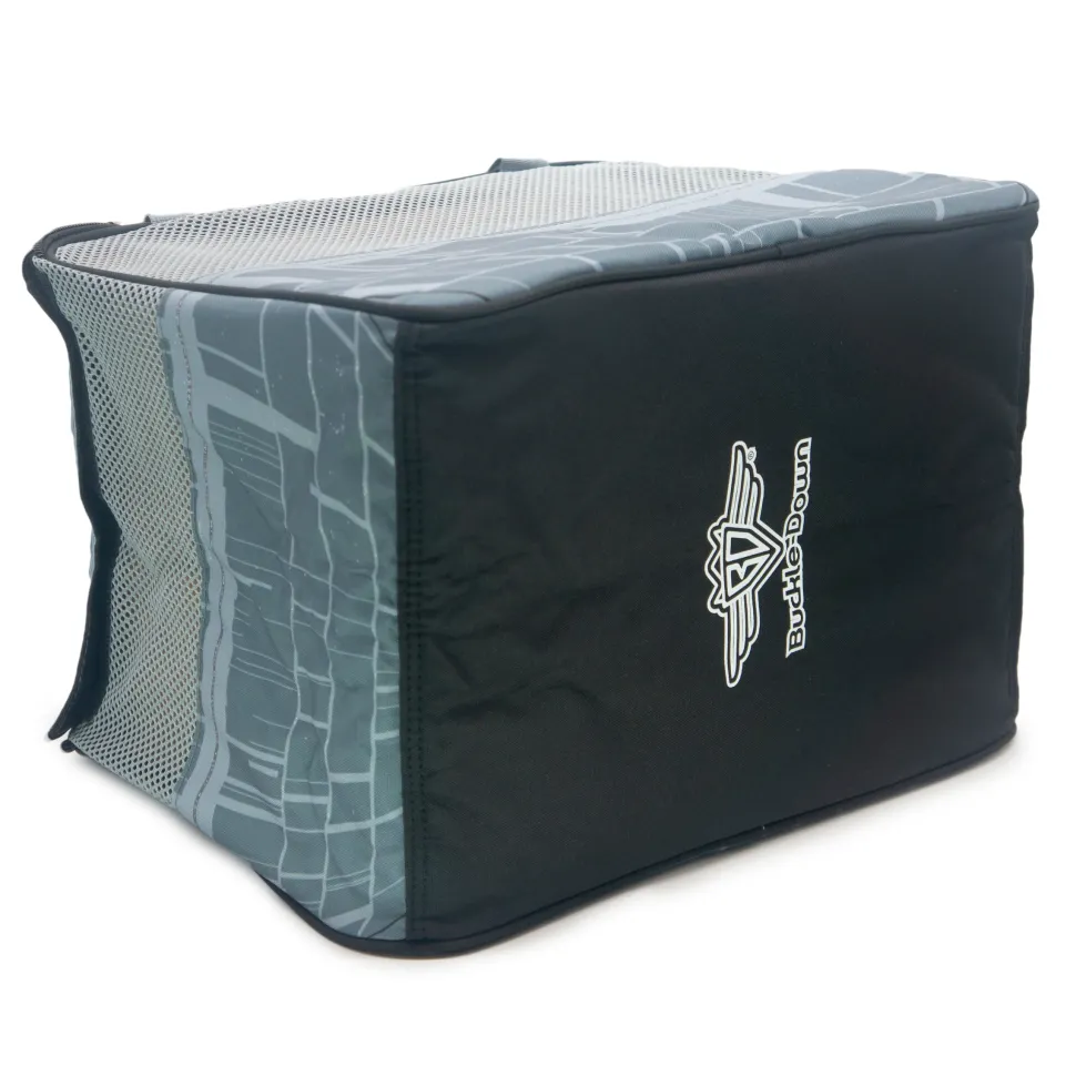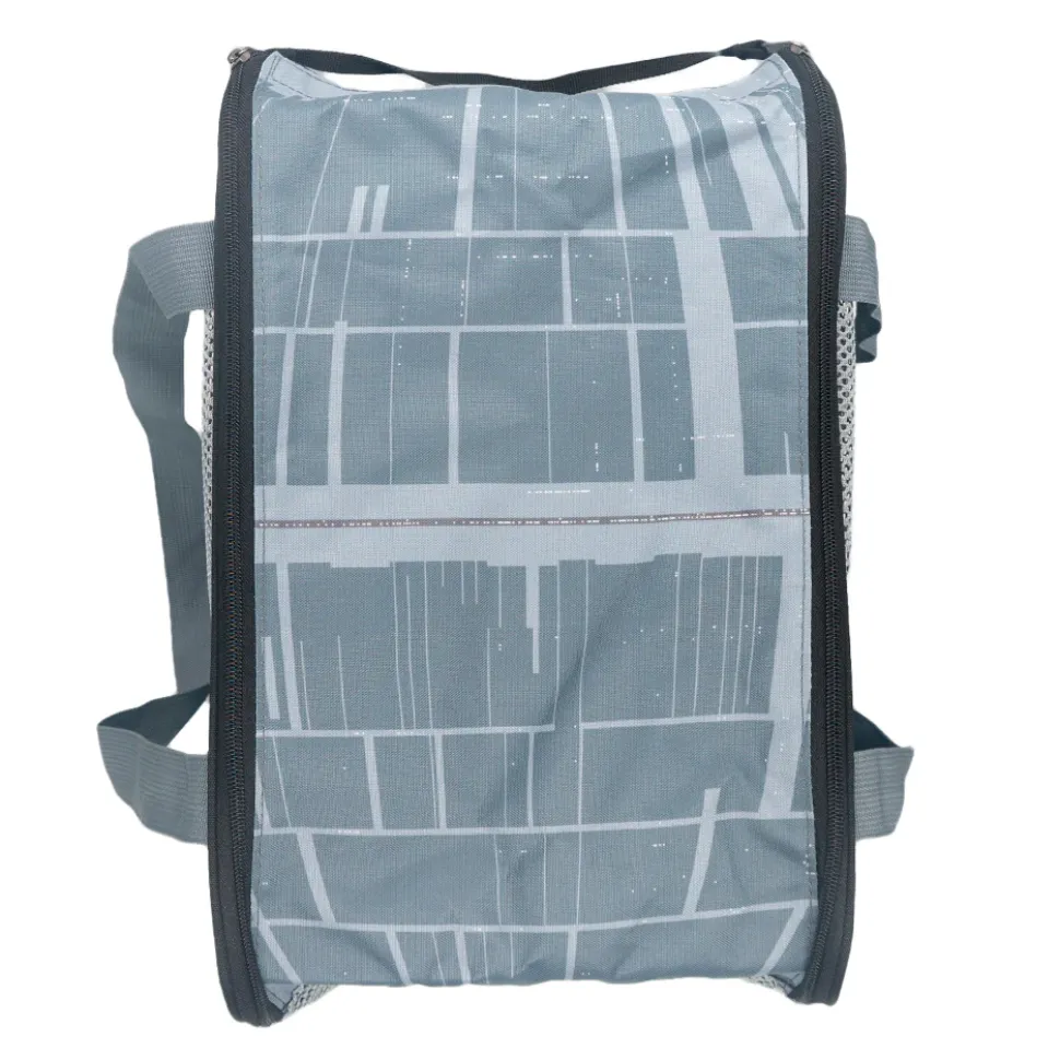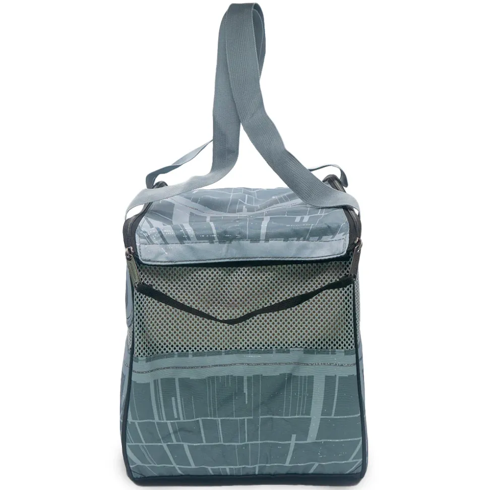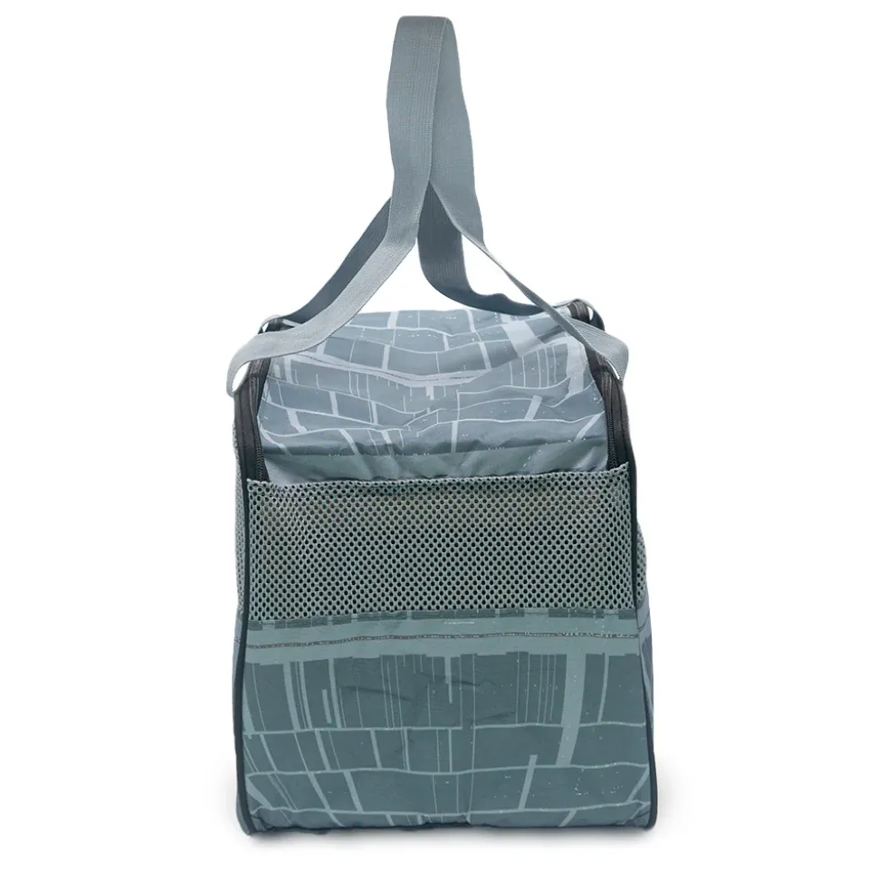 Carry your pet in style with Buckle-Down’s brand new Star Wars Death Star Pet Carrier! This soft-sided pet carrier features durable quilted polyester construction, 4 mesh panels for ventilation and easy viewing, two durable tote-style handles, and a removable base pad for added comfort and structure. The top entry is equipped with a U-shaped zipper and Velcro closure. This collapsible pet carrier measures 16″L x 11″W x 11″H, has a carrying capacity of 18 pounds or less, and meets carry-on size requirements for most airlines. This product is made in China by Buckle-Down, Inc. and Officially Licensed by Lucasfilm Ltd.