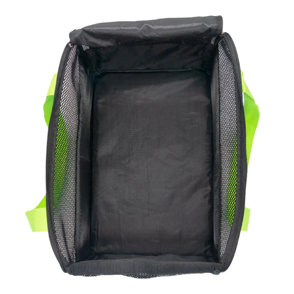 - The top entry is equipped with a U-shaped zipper and Velcro closure.