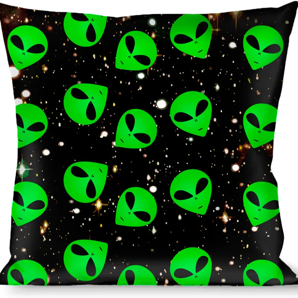 Buckle-Down Throw Pillow - Aliens Head Scattered Galaxy2/Green/Black