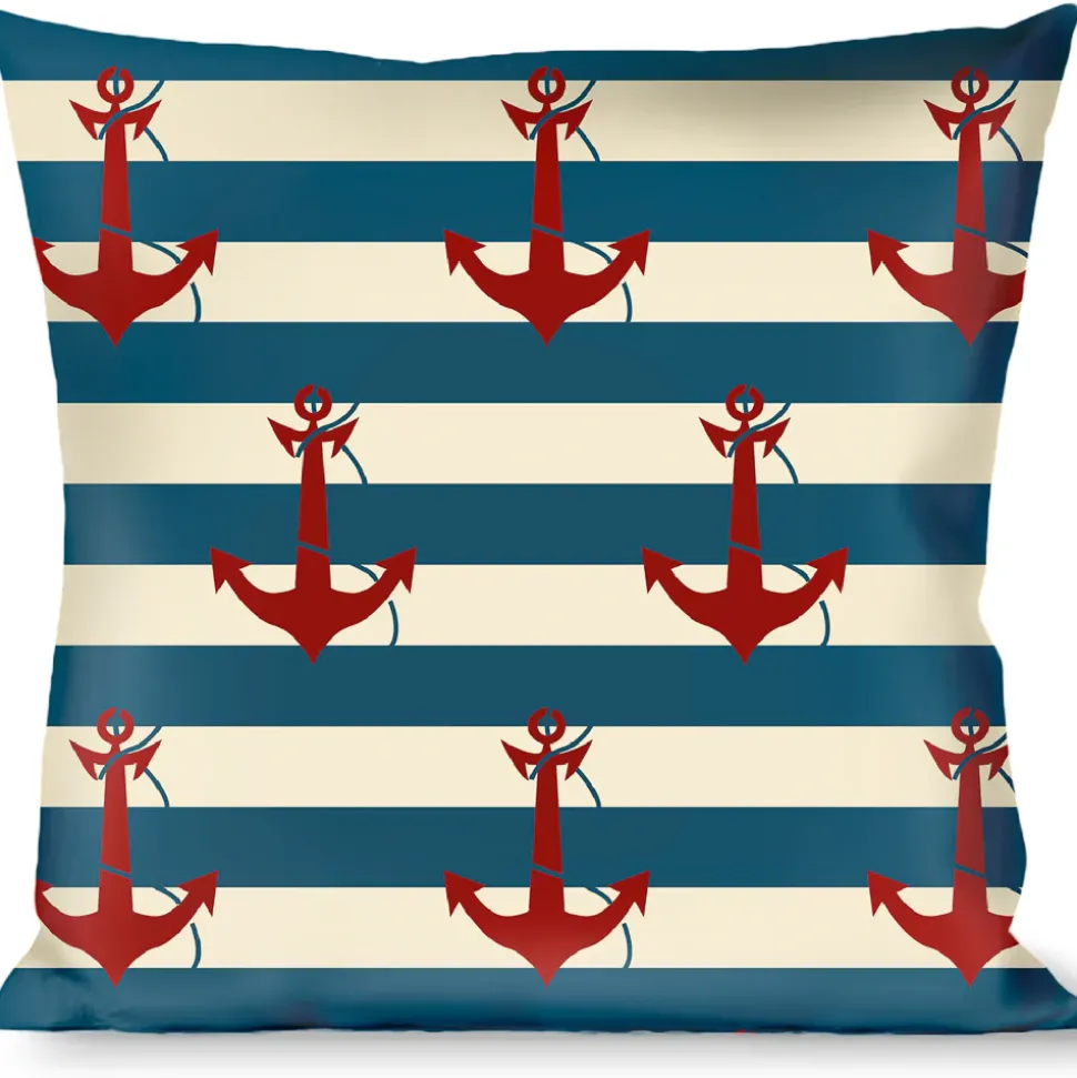 Buckle-Down Throw Pillow – Anchors w/Stripes White/Blue/Red