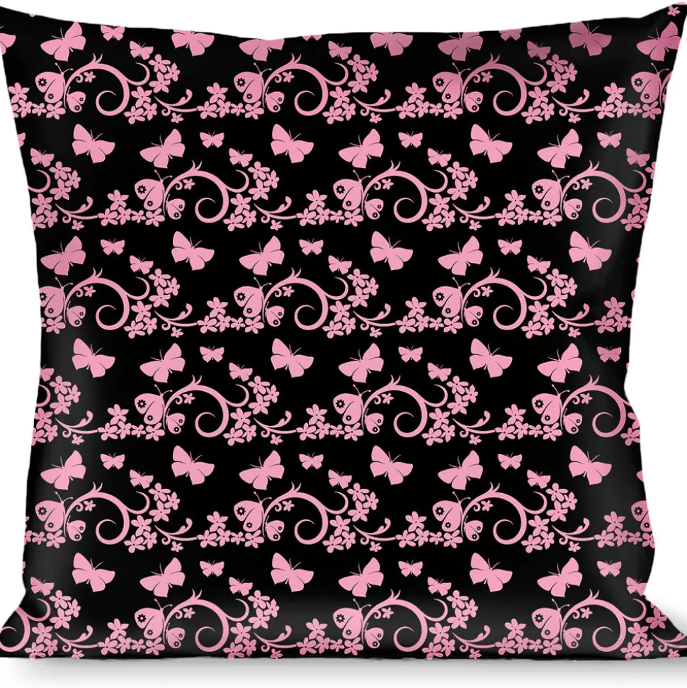 Buckle-Down Throw Pillow – Butterfly Garden Black/Pink