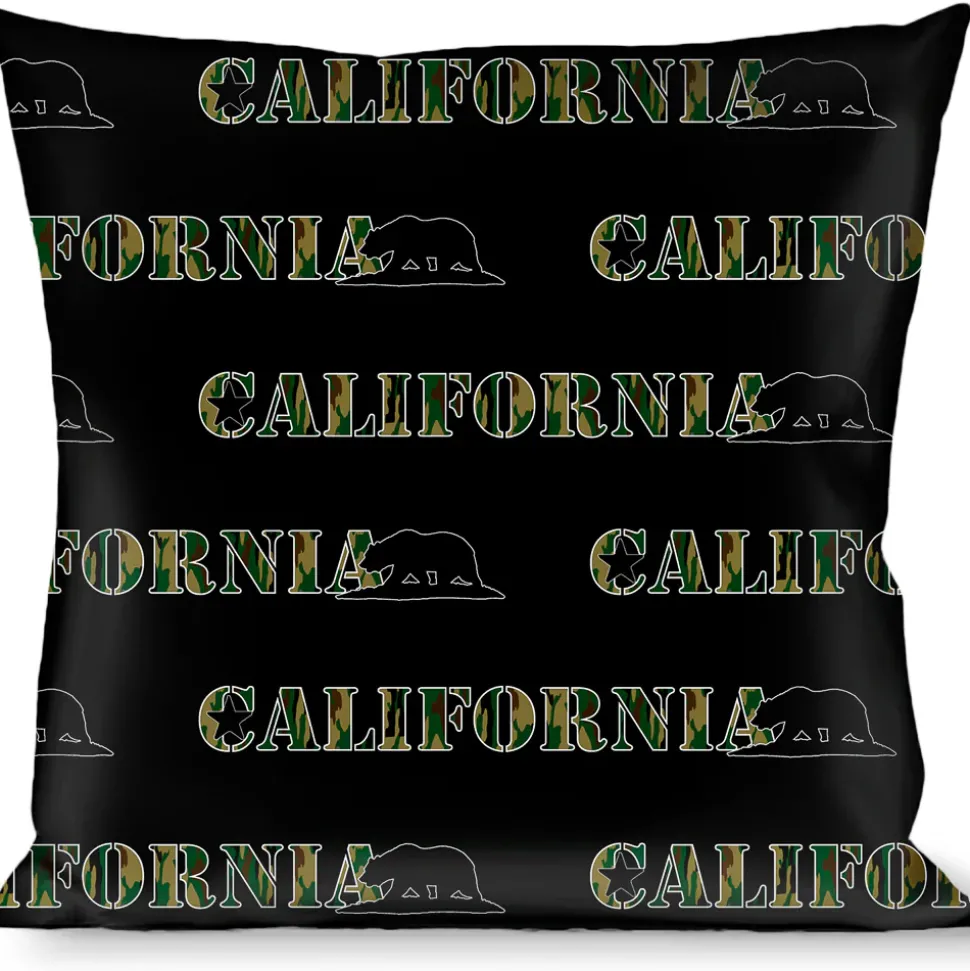Buckle-Down Throw Pillow – CALIFORNIA/Bear Silhouette Black/Camo Olive