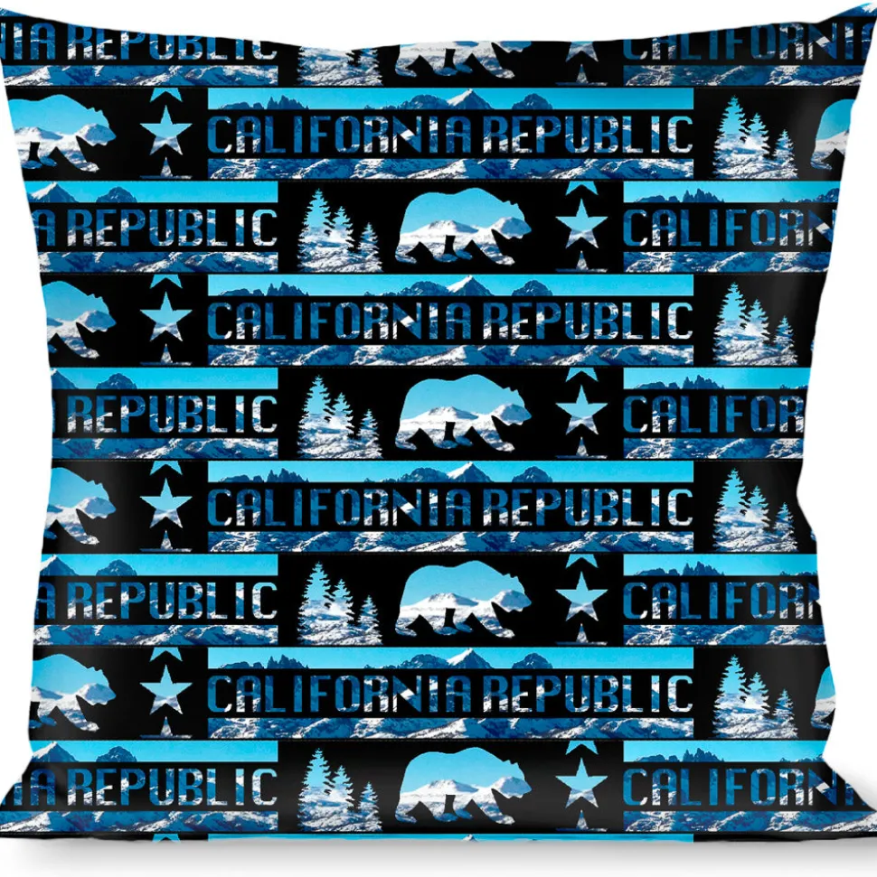 Buckle-Down Throw Pillow – CALIFORNIA REPUBLIC/Bear/Stars Silhouette Black/Scenic Mountains